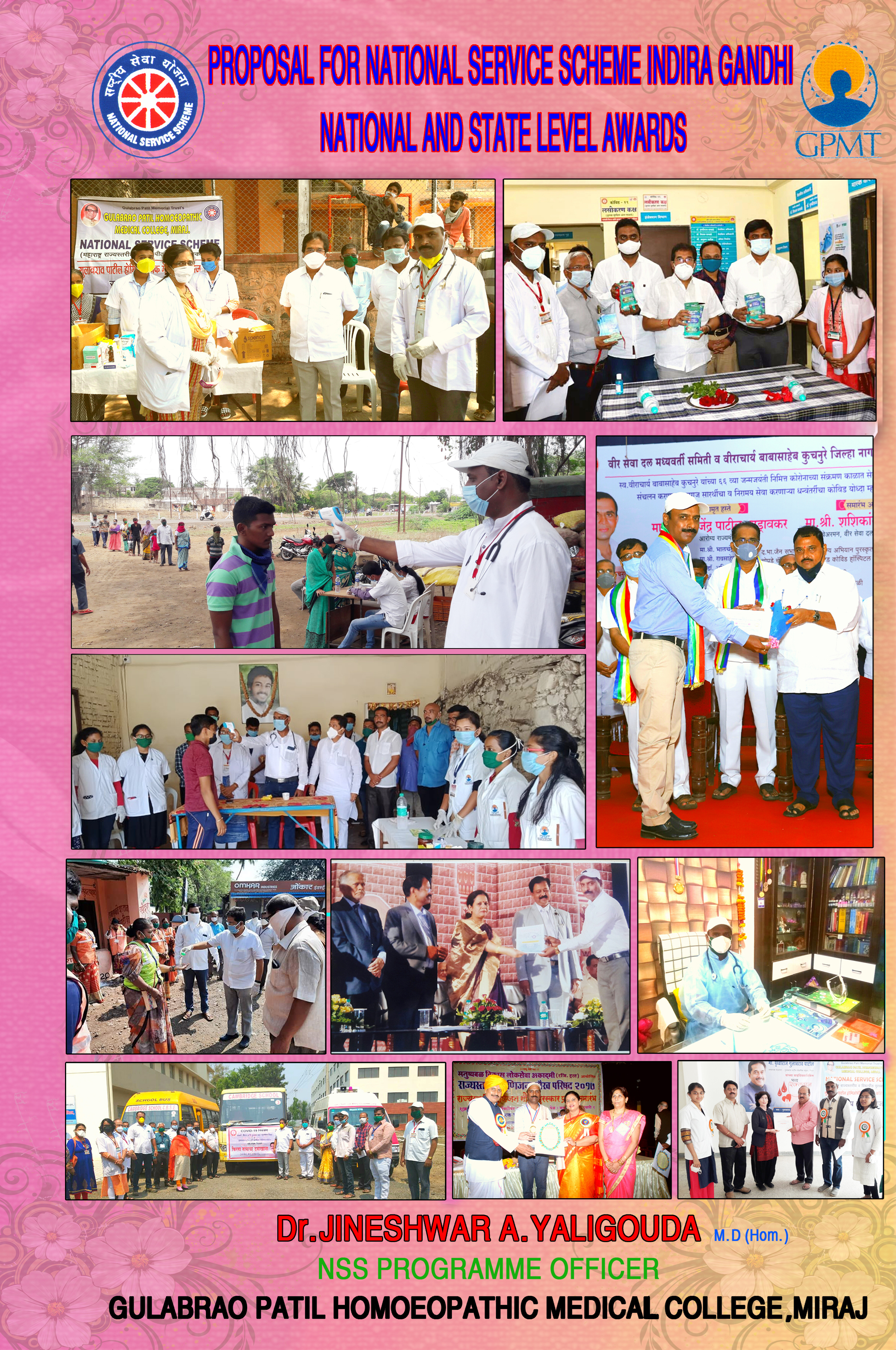 Gulabrao Patil Homoeopathic medical college NSS unit has developed a definite system for regular activity under NSS programme conducted under the enrolled NSS volunteers for two years duration. In the adopted village, NSS volunteers visit monthly and once a week as a peripheral Homoeopathic OPD where free Homoeopathic treatment is provided to the villagers. The NSS Activities, both special camp and regular activities has become part and partial of the institute’s programme at GPHMC Miraj and this has been linked with the medicals academic teaching programme thus putting emphasis on the activities.